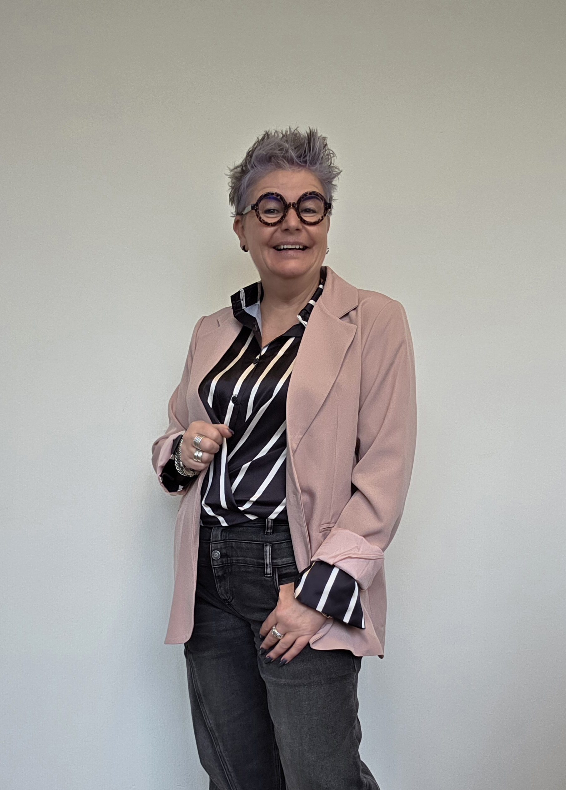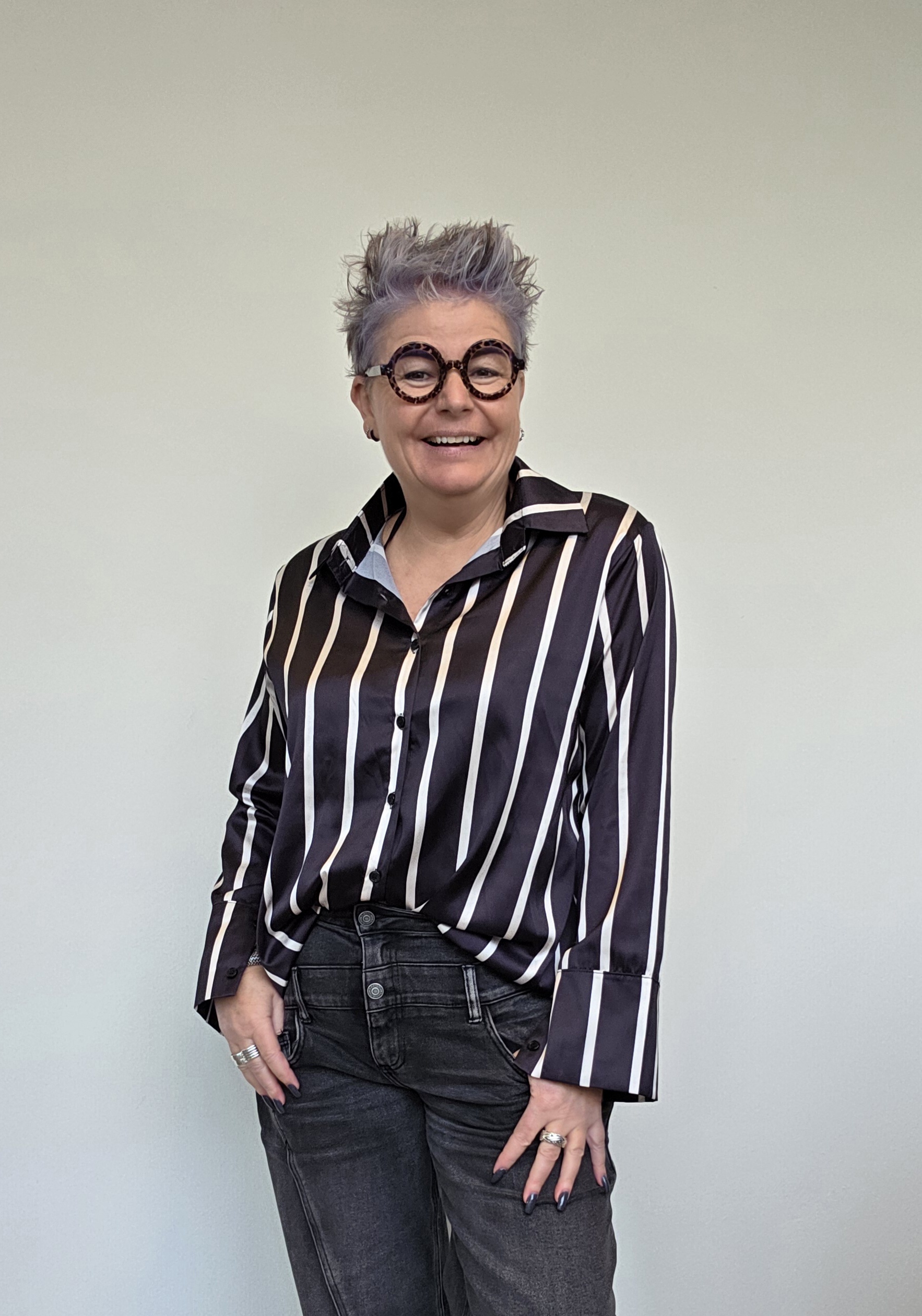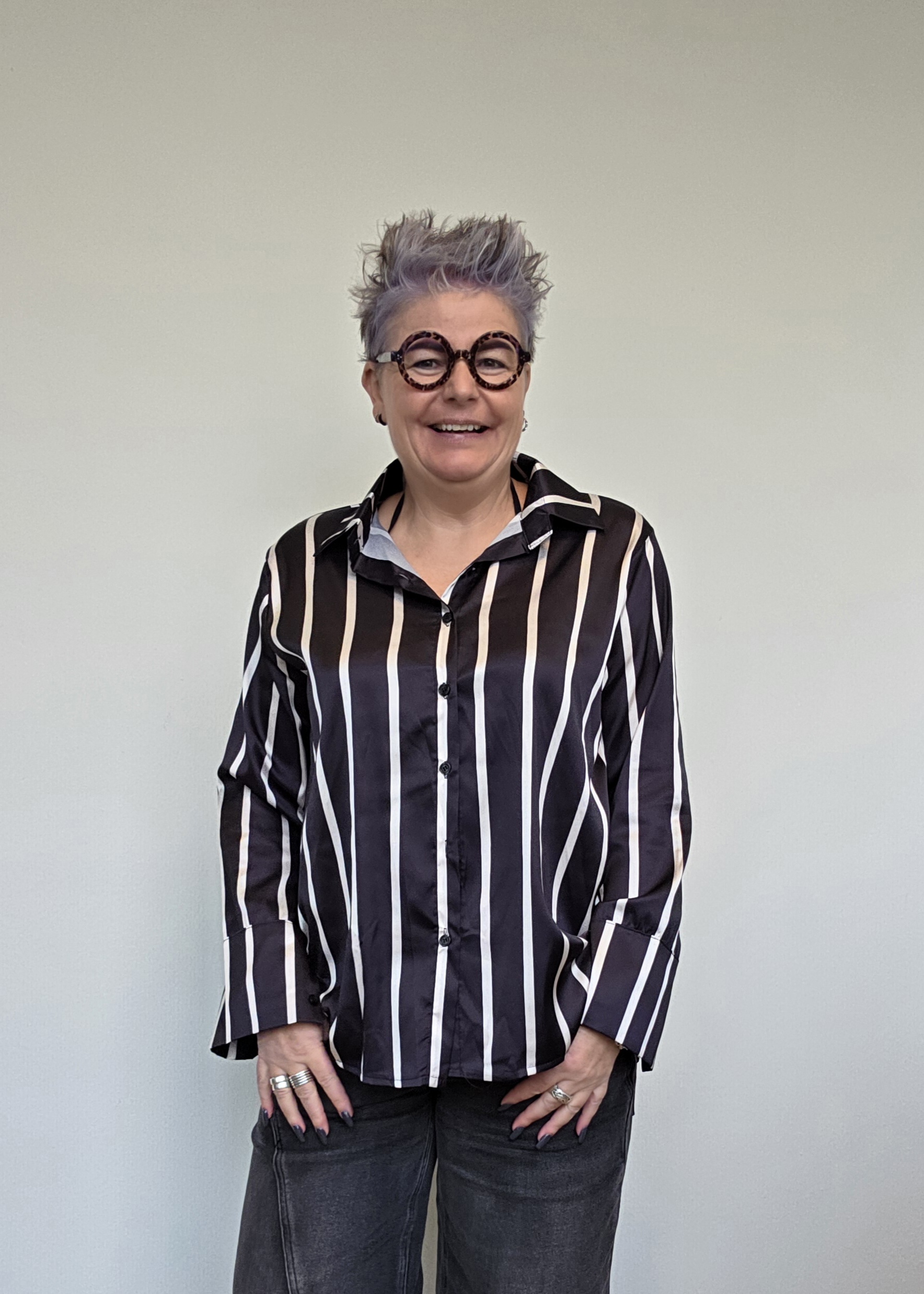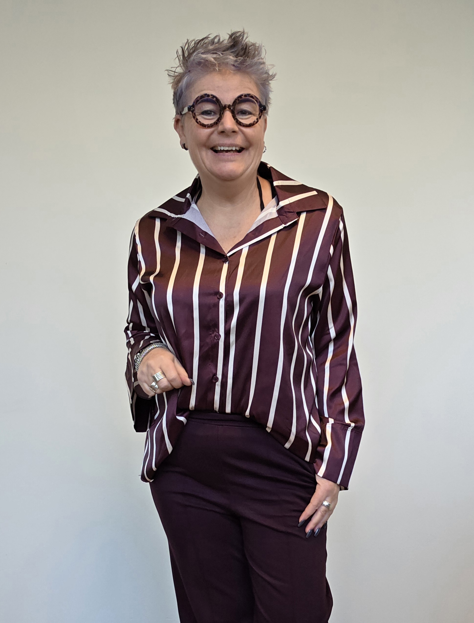 Blouse heeft een streep, altijd leuk,tijdloos.