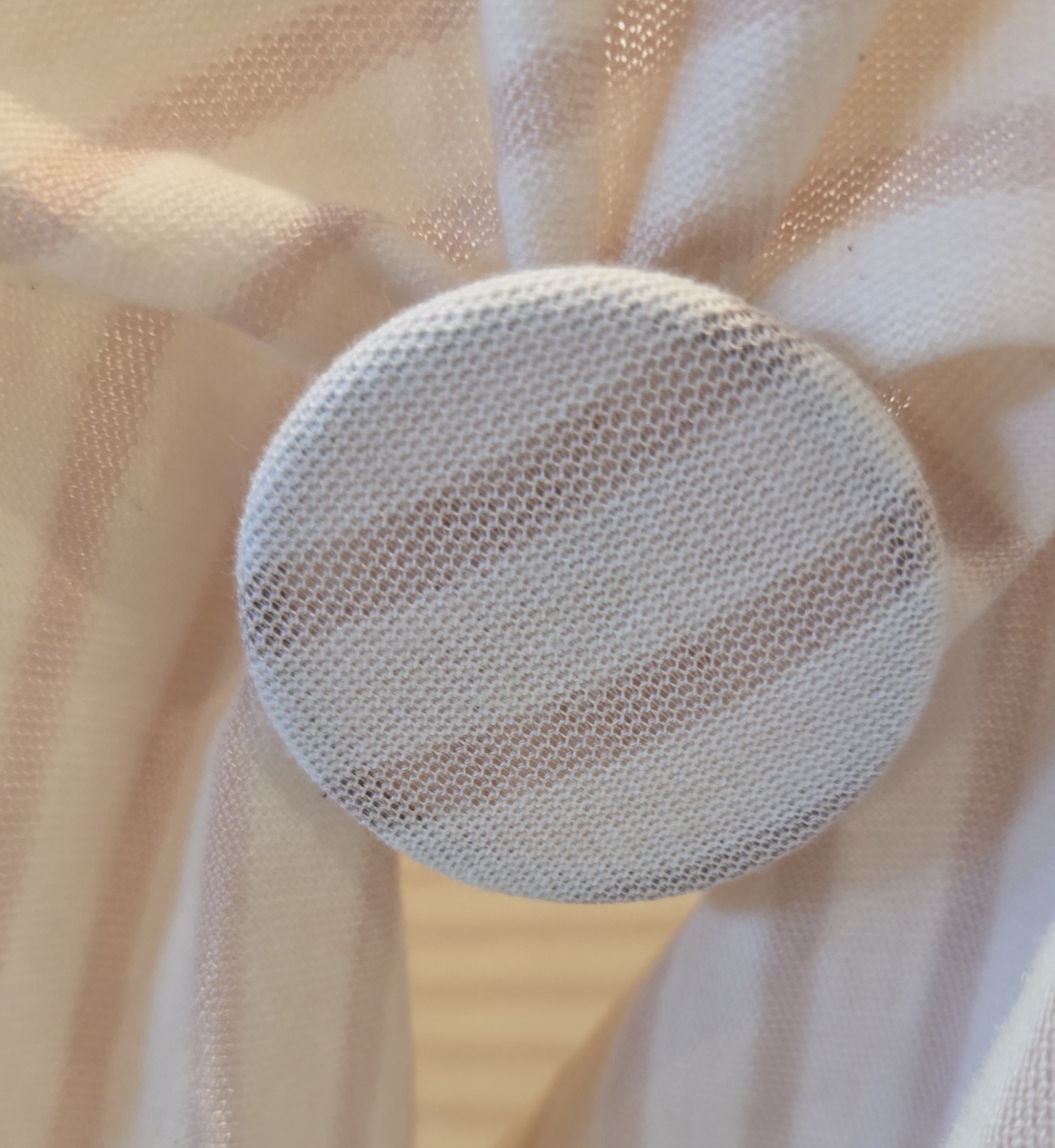 Je legt m boven op het shirt en aan de achterkant, draai je er een elastiekje omheen.