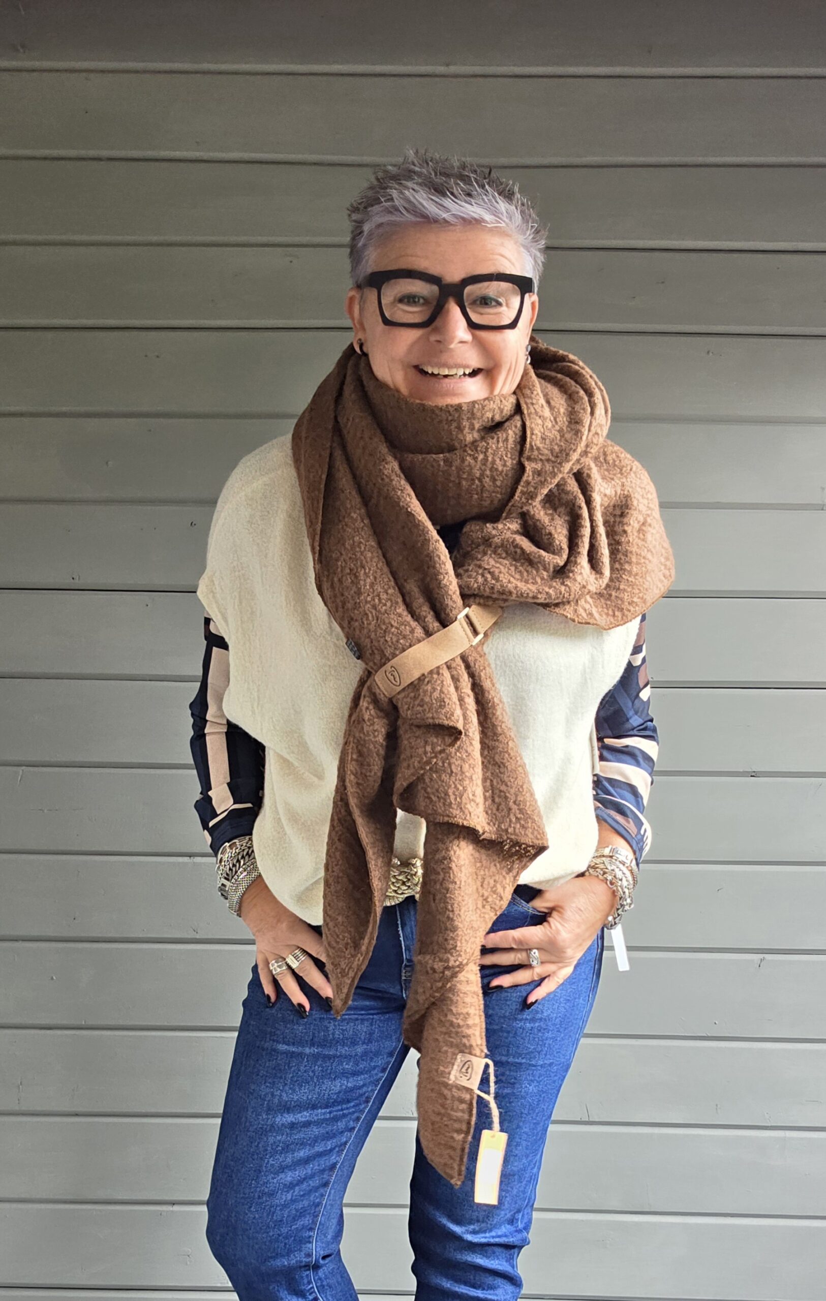 Of je nu kiest voor een nonchalante look of jezelf extra goed wil inpakken op ijskoude dagen, dit detail zorgt ervoor dat de sjaal op zn plek blijft zitten!