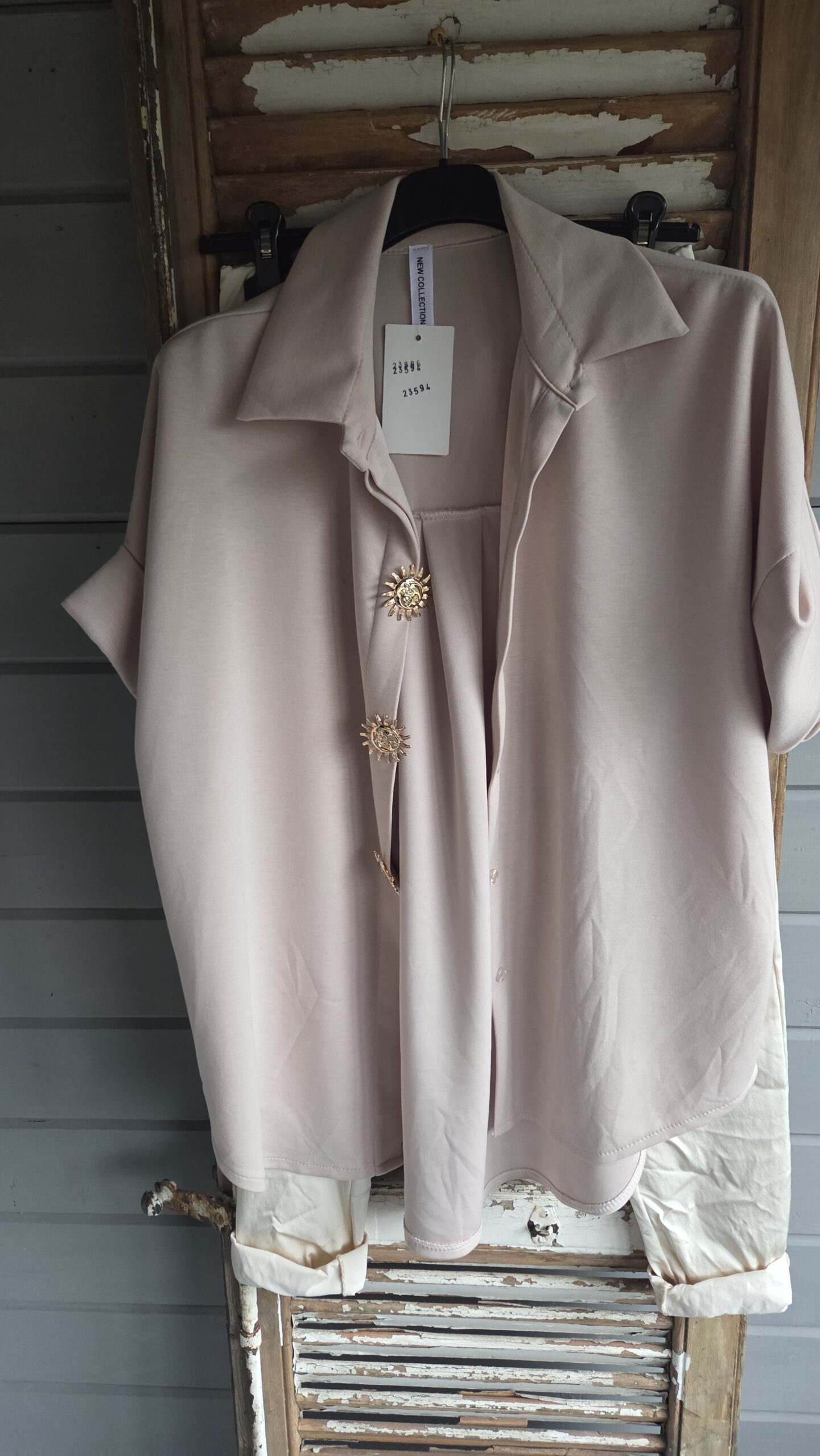 joggingbroekje met glans/vestjasje gouden zonnetjes zijn broches, dus kunnen eraf/Trui, heerlijk zacht