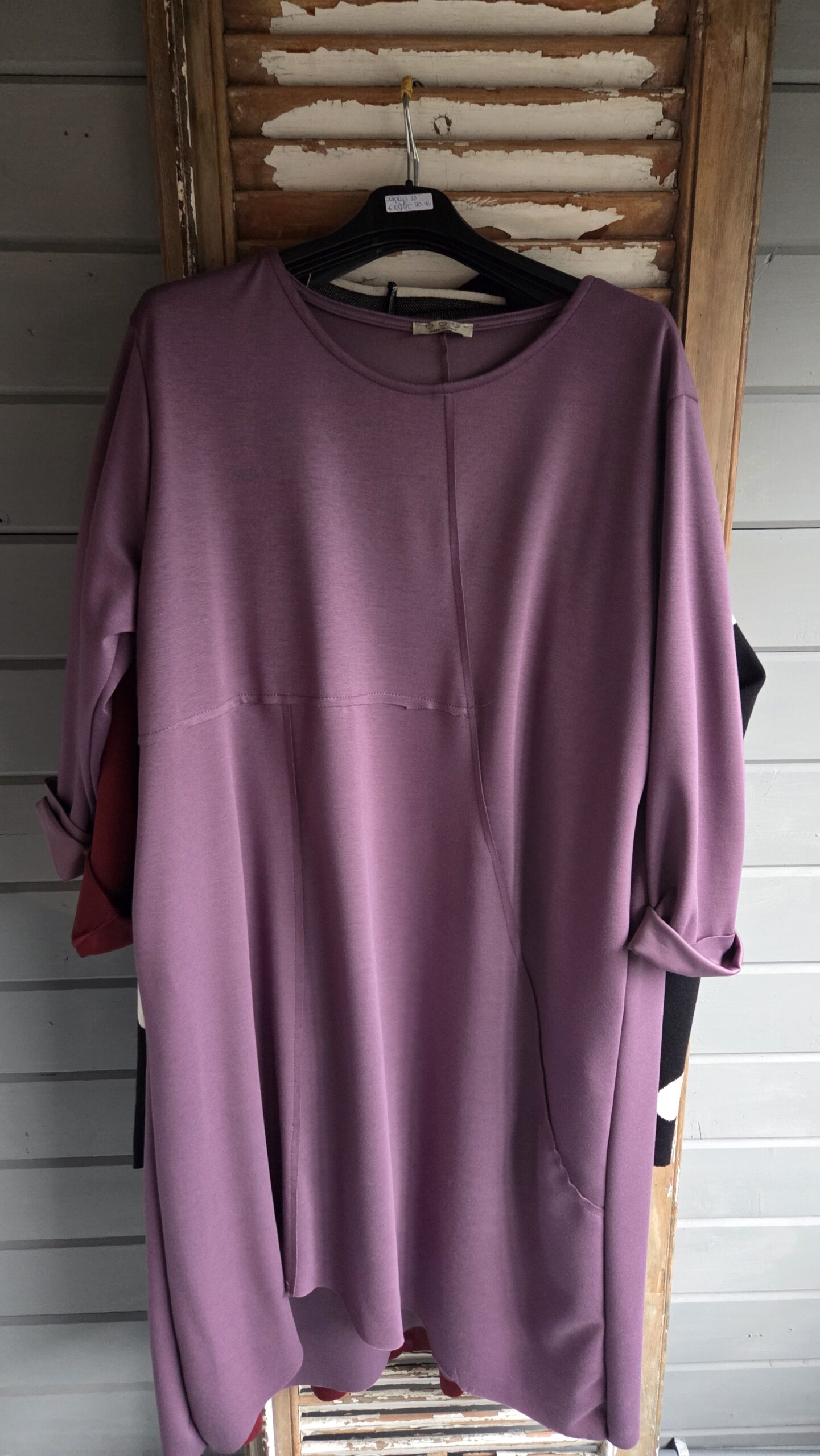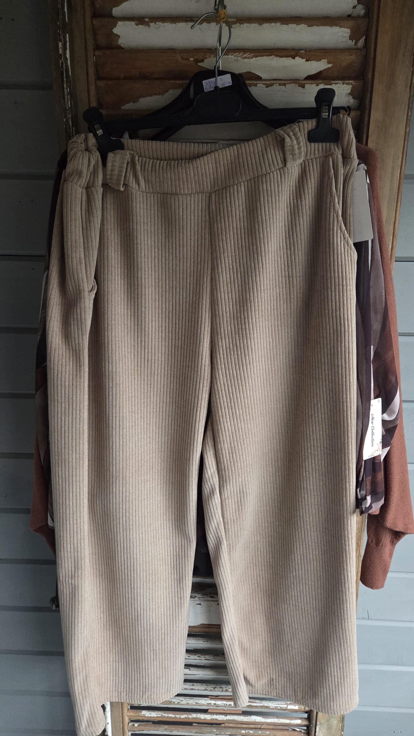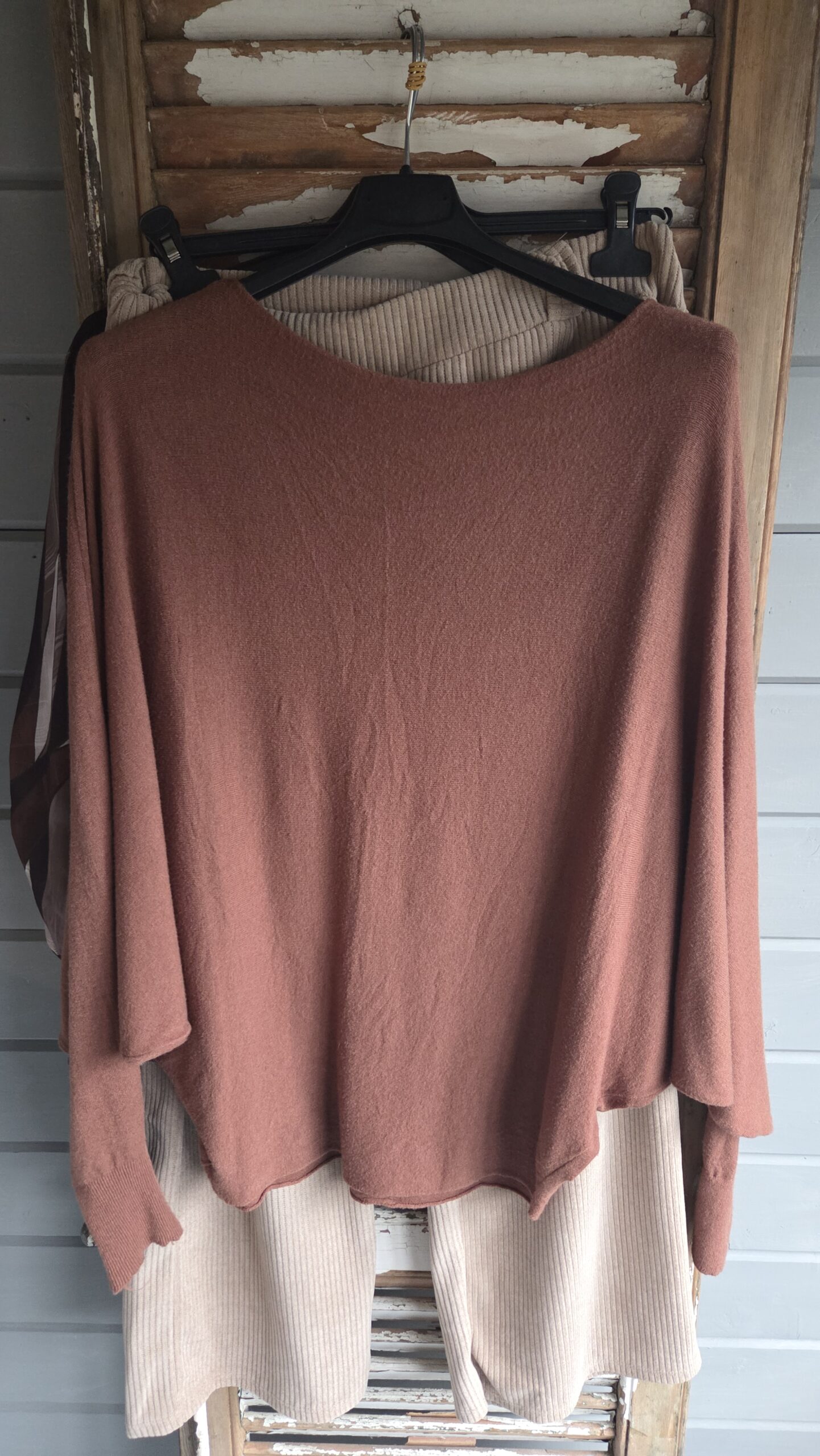 shirt print/Vleermuistrui middenbruin/ rib broekje wide leg