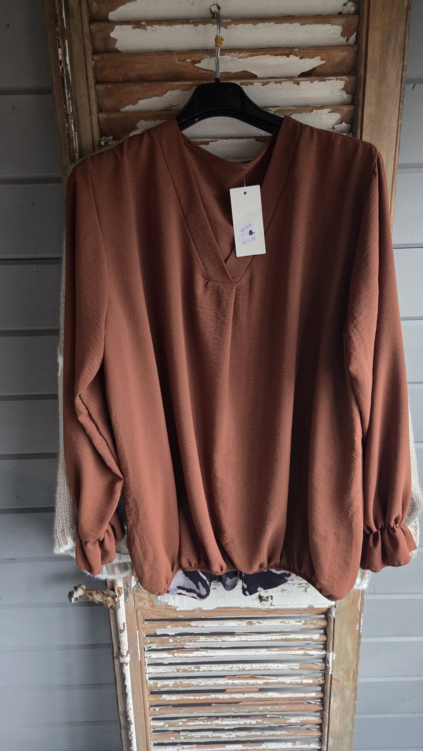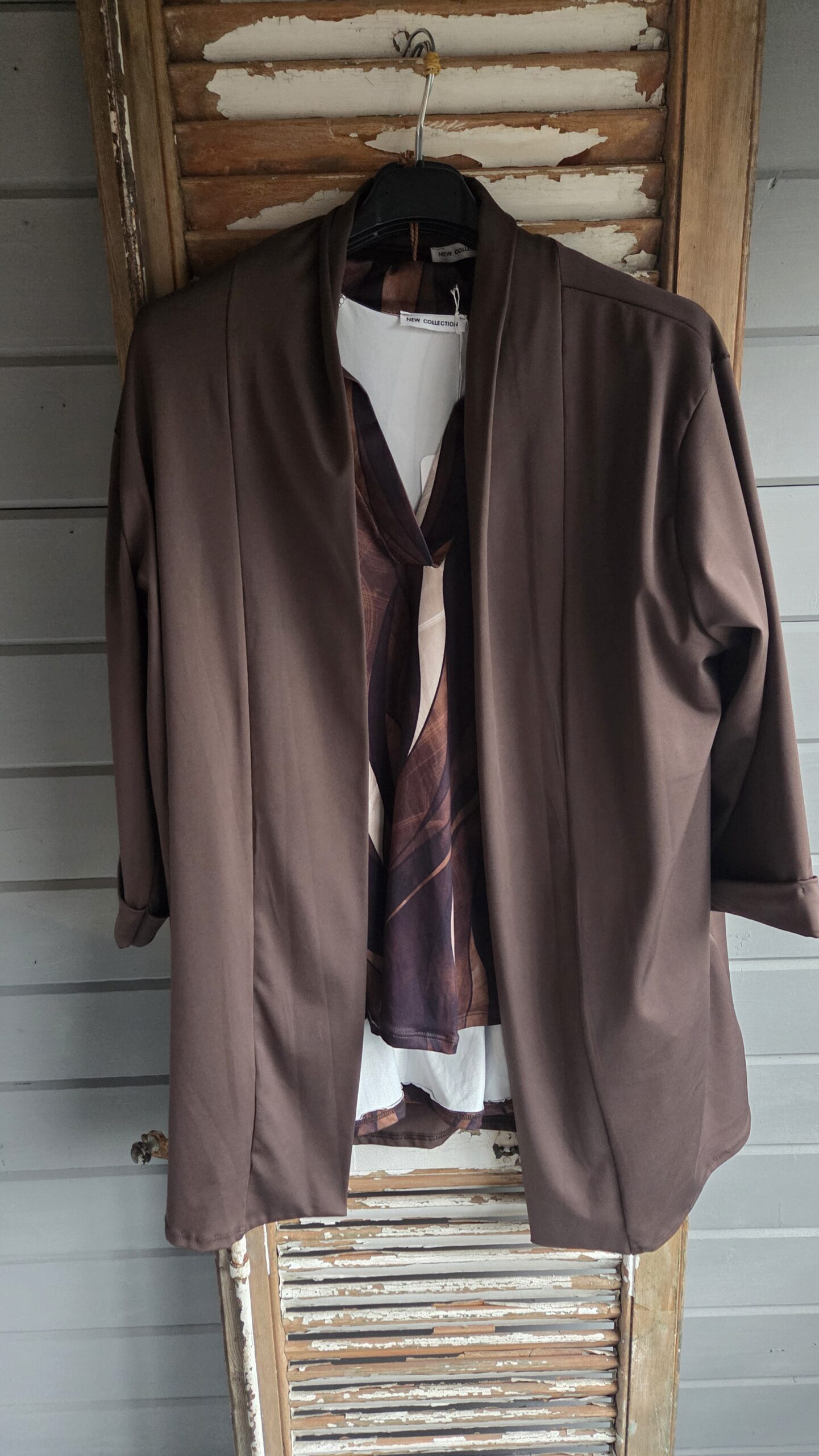 shirt print met kraagje/ traveljasje d.bruin/ blouson midden-bruin