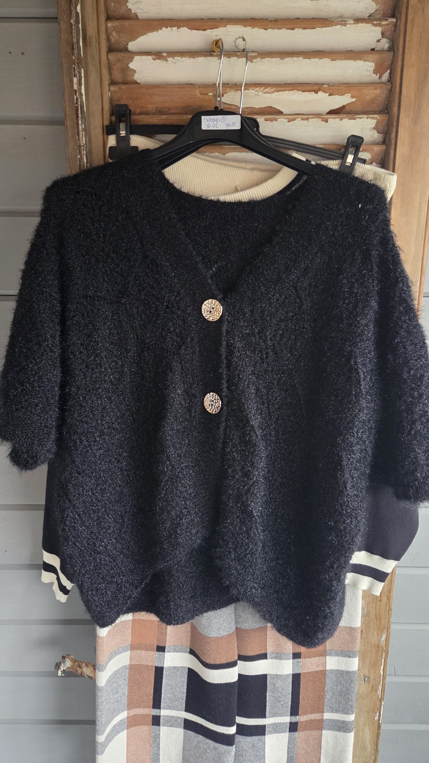 Vest met ajour,ook te dragen t/m 44/ trui La achterop/ruitbroek wide-leg