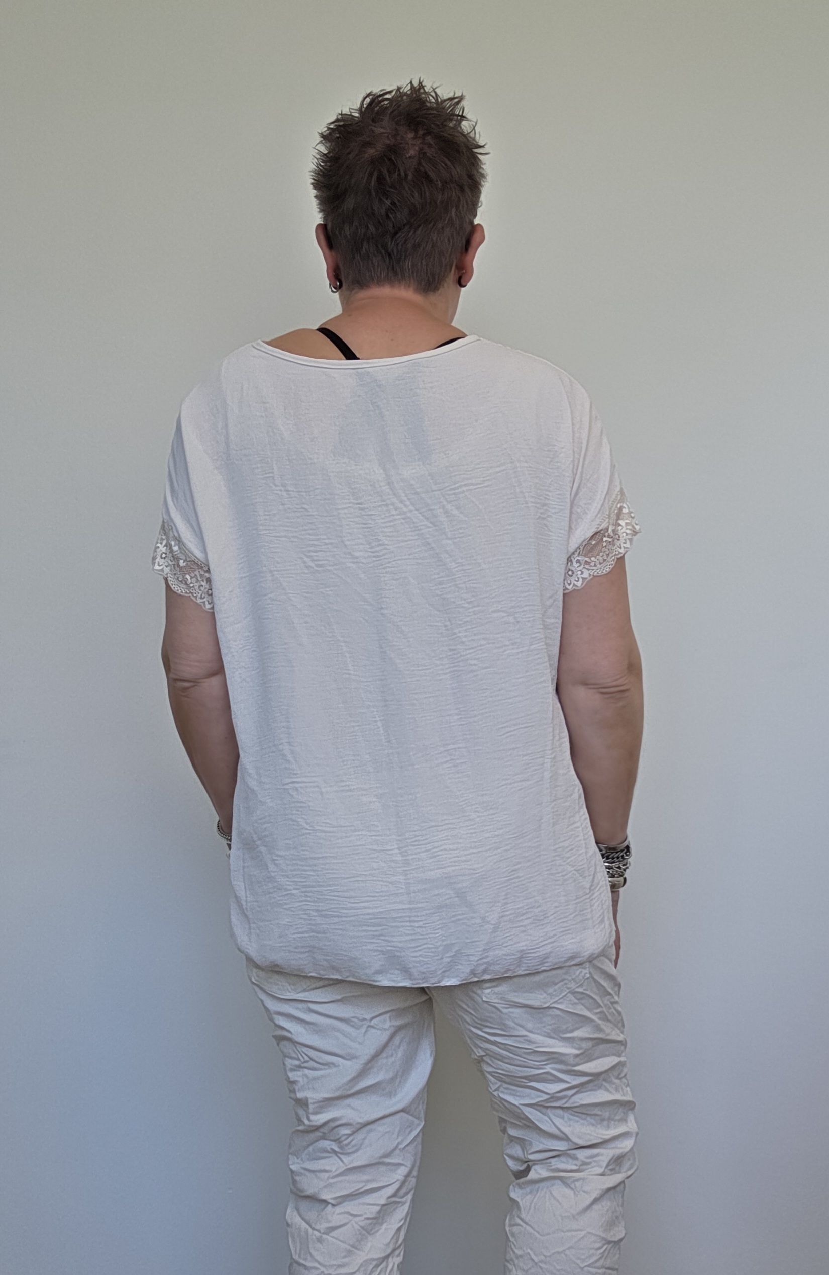 Shaynie shirt/kant V-hals/beige