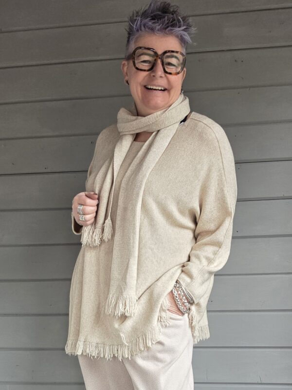 Beijing trui/ met sjaal/ beige