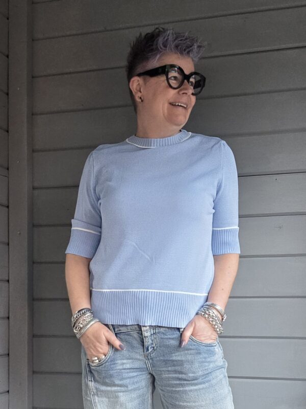 Boston truitje/km/met witte bies/ l.blauw